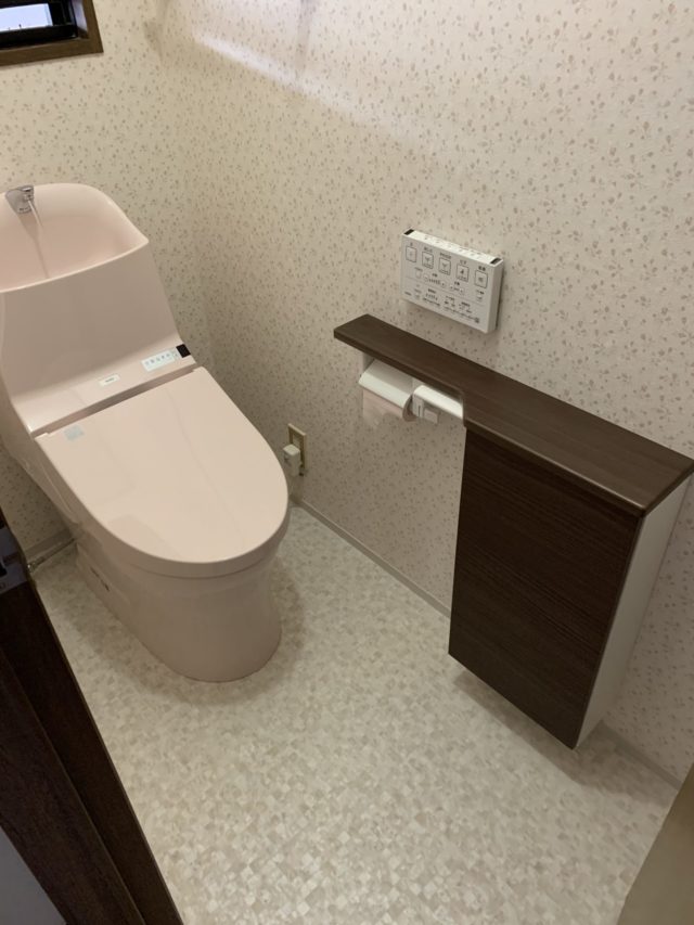 節水タイプのウォシュレット一体型で自動開閉タイプの高性能トイレへの交換工事のご依頼です。