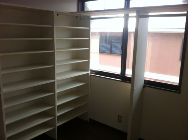 4.5畳を収納にするということで、棚やパイプなどをたくさん取付したので、かなり収納力はアップしたと思います。